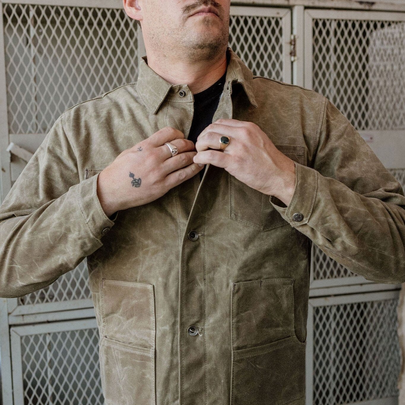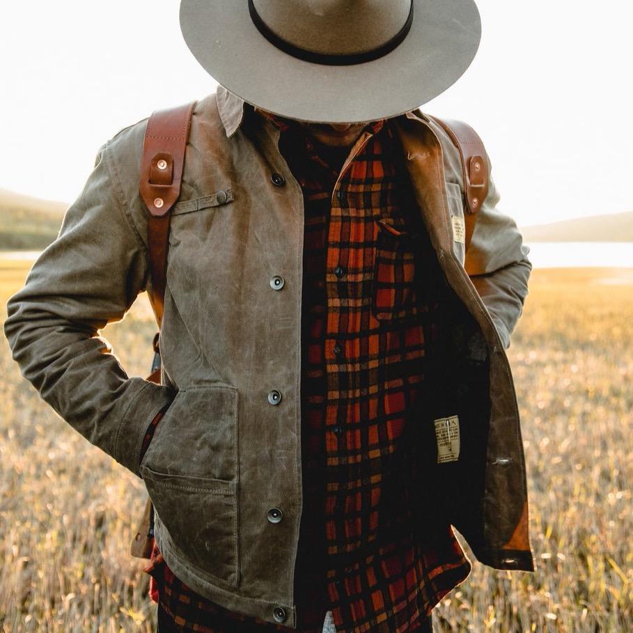 The famous Blanket Lined Cabin Jacket is back for our Fall/Winter collection! This new jacket is lined with 100% USA Milled Wool from Faribault Woolen Mills. It is thick and extremely comfortable. This waxed jacket will protect you from the rain and keep you nice and warm. 12 oz Waxed Canvas Outer 100% USA Made Wool Lining Flannel Lined Sleeves and Pockets Antiqued Brass Button Shanks Antiqued Brass Snaps on Neck Button & Sleeves Fits like a trucker jacket – sits at the belt line Chest Pocket, Pen Slot, Fly Rod Snap, Screws Pockets, D-Ring for Forceps/Tool. Interior Chest Pocket Spot Clean Only USA Made Click here for sizing chart