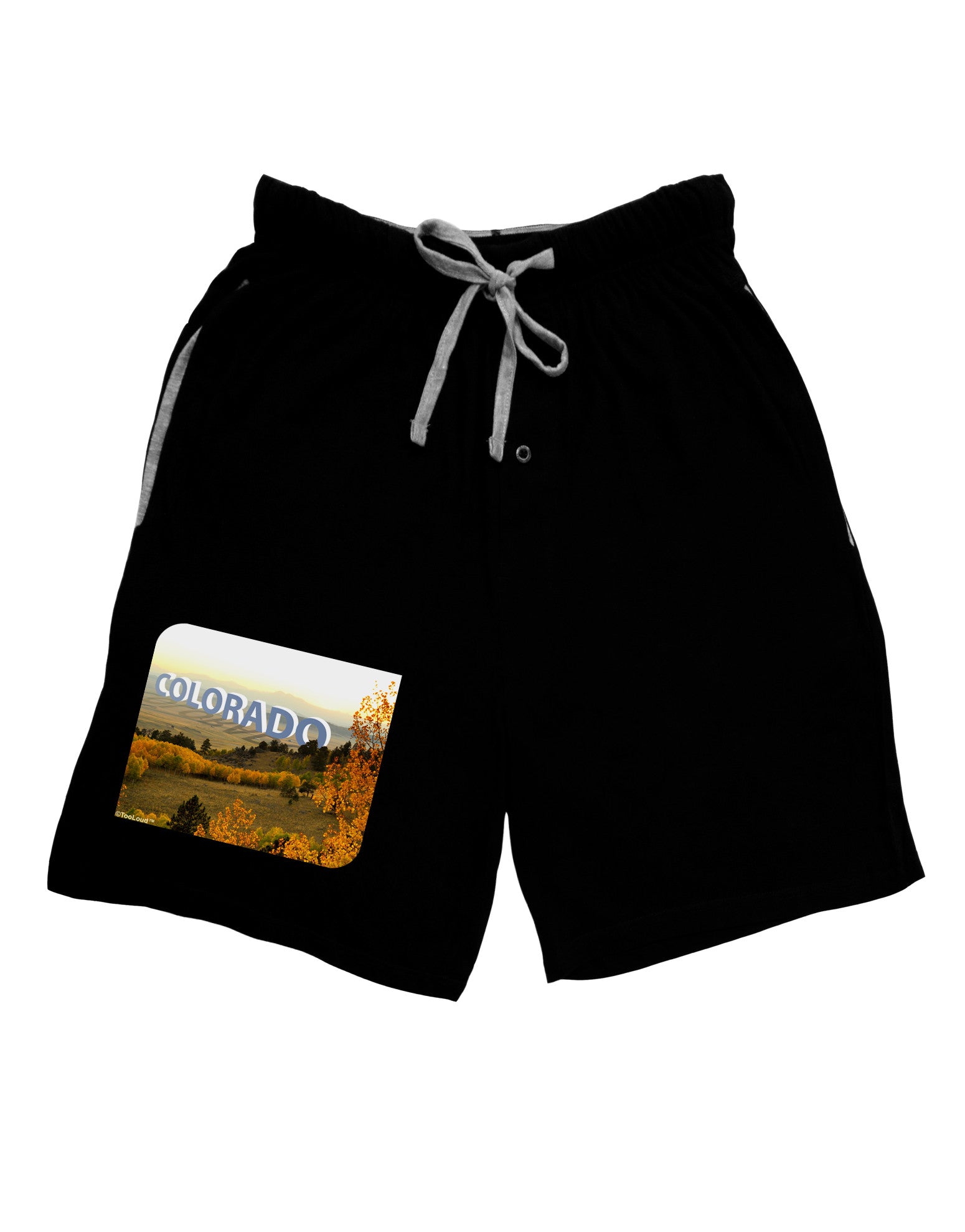 Photography by AikenImagery. All rights reserved. These fun printed garments are a great personal touch on you, or as a gift to a friend or loved one! Great for all-year-round too! Colors may differ from image, as each monitor is made and calibrated differently. Loose comfort fit. Small 28-30, medium 32-34, Large 36-38, XL 40-42, 2XL 44-46. Soft, stretchy, medium-weight 100% cotton construction with side pockets, button closure fly, and drawstring/elastic waistband. Tagless. Print may be placed or sized differently, and colors may appear slightly different, than in the image shown. Unique, Authentic, copyrighted design by TooLoud (Trademark) brand. Printed in the USA with pride! This design is available on many other items! Purchase a full outfit, complete with accessories, to show your pride or festivity, or purchase matching outfits for the whole family! TooLoud (Registered Trademark) Brand. Designed and printed in Phoenix, AZ, USA! Click here for Size Guide Colorado Postcard Gentle Sunrise Adult Lounge Shorts by T-EA439W-TD-HNS1005