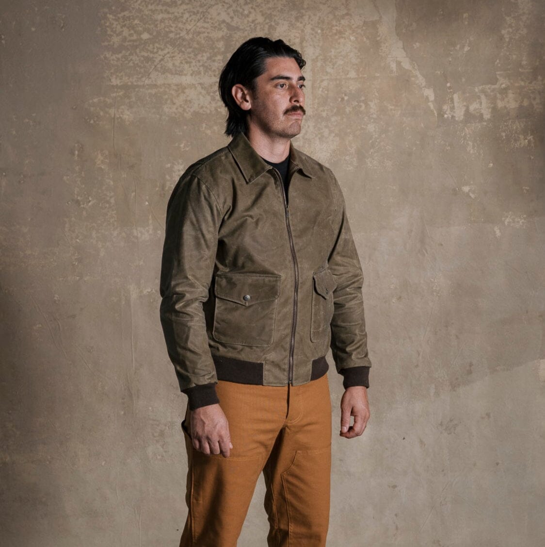 Welcome the newest addition to the Bradley Mountain Jacket line: The G-1 Bomber. Modeled after the 1947 Navy Jacket, we put our own spin on it. With waxed outer, and soft flannel lining, this jacket is an instant classic. 12 oz Waxed Canvas Outer Flannel Lined Sleeves and Pockets Antiqued Brass Button Snaps Gusseted shoulders for mobility. Double entry pockets Chunky front metal zipper Hidden inside pockets Spot Clean Only USA Made Click here for sizing chart